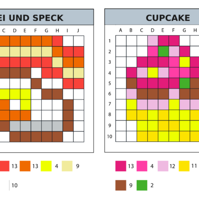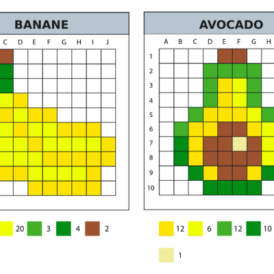 8 modèles de pixel art 10×10 sur le thème de la noderrriture et des aliments.
