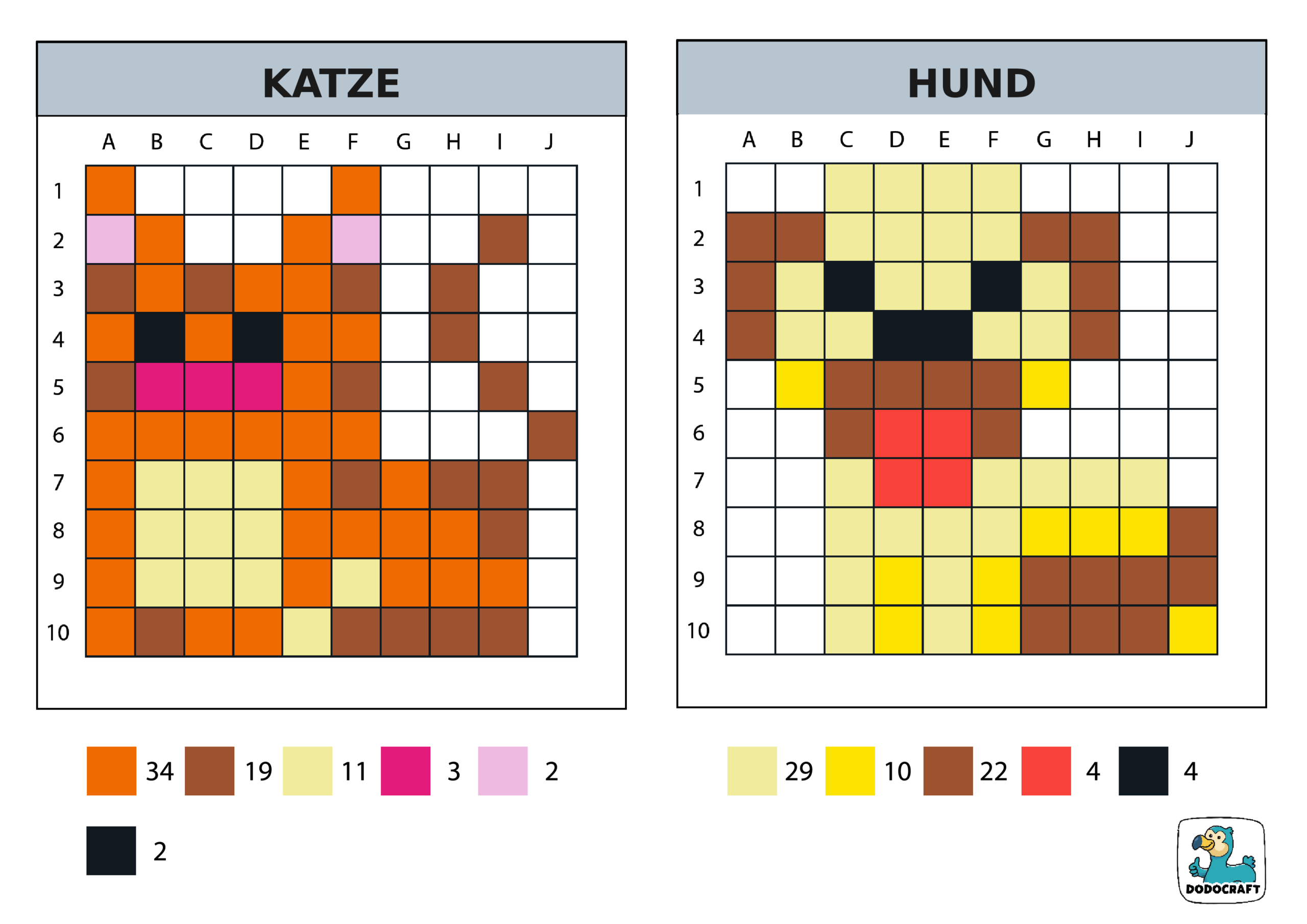 Pixel Art 10×10 Katze Hund
