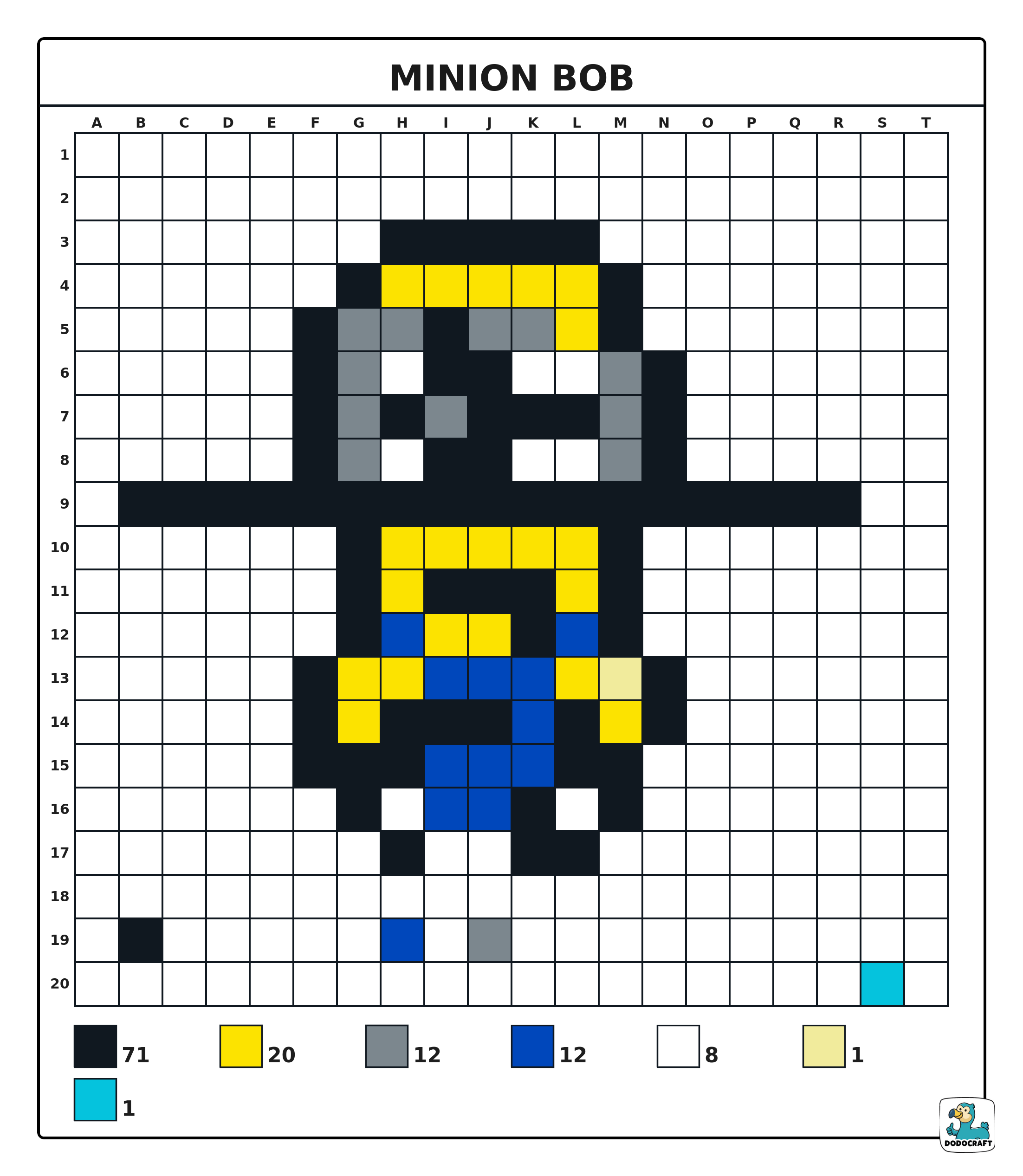 Minion Bob Pixel Art 20×20