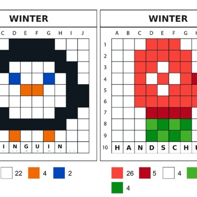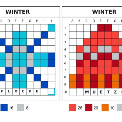 Saison hivernale : 8 modèles 10×10 à réaliser avec les nodervelles coderleurs de pixels.